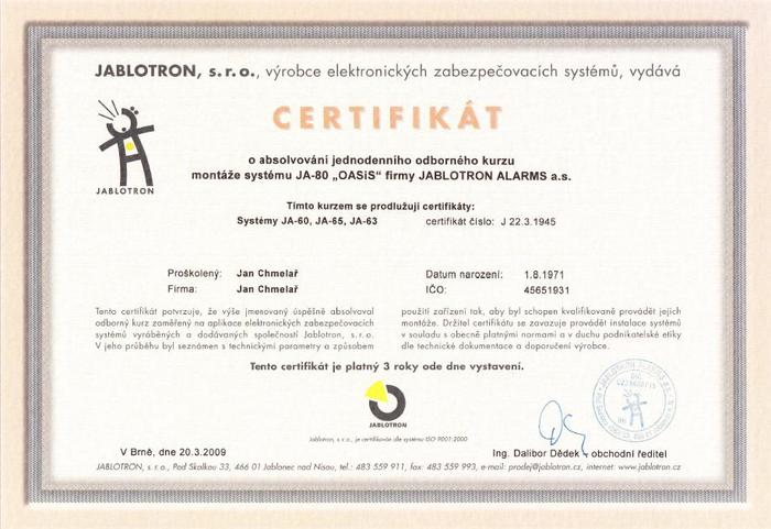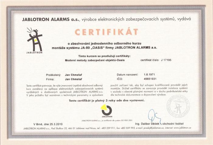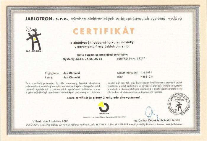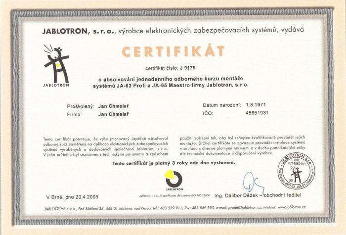 Certifikát o proškolení získávají každoročně stovky montérů a firem. Je však již na zvážení každého zadavatele, komu svěří zabezpečení svého majetku - zda tradiční specializované firmě, či příležitostnému montérovi, který má minimum zkušeností i skutečných referencí.