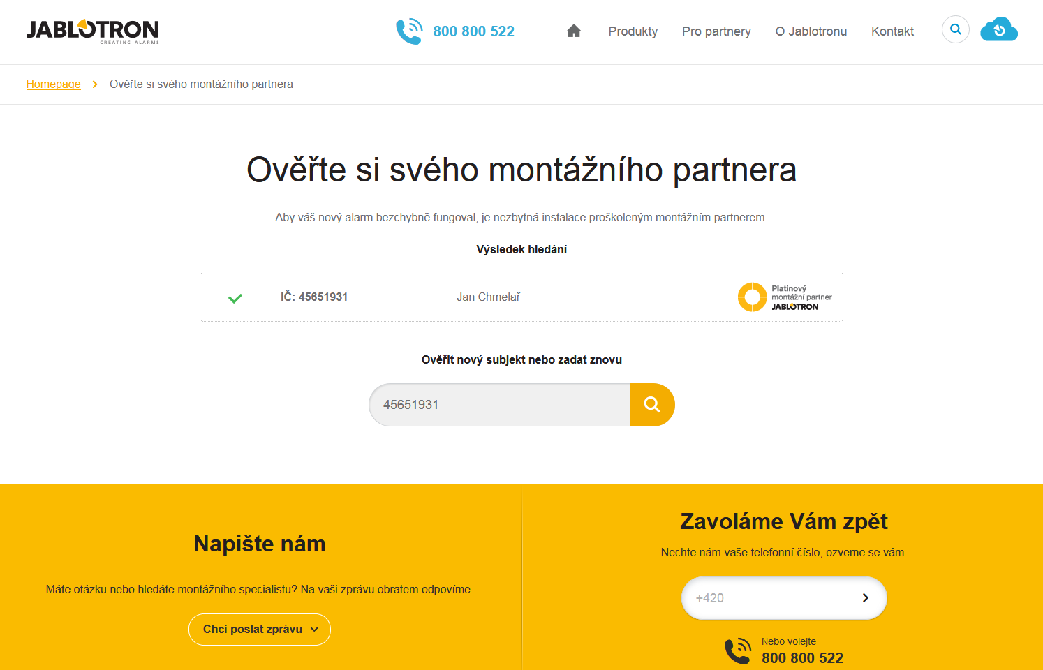ZKUŠENOSTI = nejméně pět let praxe a nejméně 20 instalací alarmů ročně